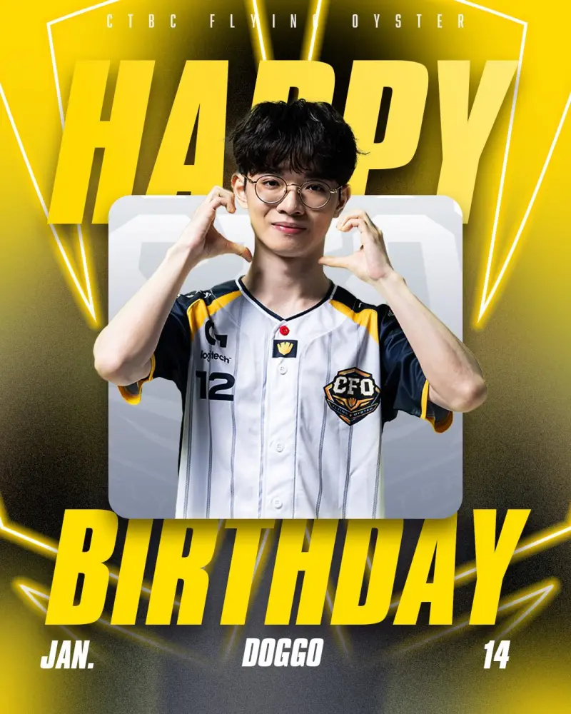 虎扑01月14日讯 今日是CFO下路选手Doggo的生日,CFO为其送上生日祝福,配文如下: